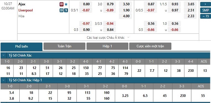 Liverpool vừa thua bét bảng Ngoại hạng Anh Nottingham và đó đã là trận thứ 13 họ không thắng tỷ lệ kèo châu Á trong 16 lần ra sân gần nhất. Từ cuối tháng Bảy, trừ khúc khải hoàn 7-1 Rangers, thầy trò Klopp không thắng thêm 1 trận sân khách nào khác. Liverpool hòa Ajax là đi tiếp và có lẽ khách cũng khó làm được tốt hơn!