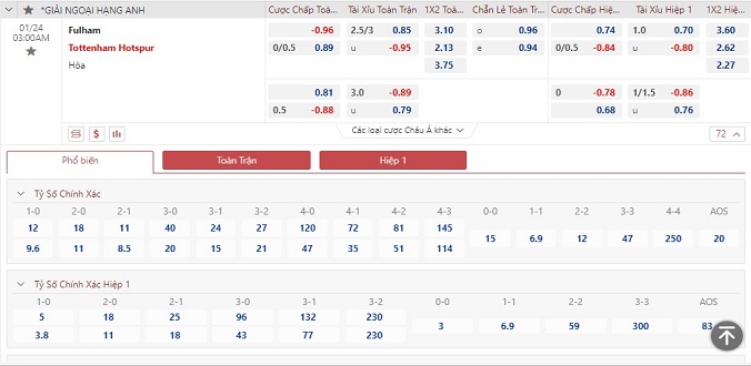 Trở lại đây là 5/7 chiến thắng gần nhất mà đội chủ sân Craven Cottagge có được, đồng thời mang về cả 7 kèo thắng châu Á. Đó là trạng thái vô cùng tích cực, khi nhìn sang phía Tottenham là diện mạo trái ngược. Họ thua 8/10 kèo châu Á gần nhất trong đó hua 3/4 kết quả chuyên môn vừa qua ở Ngoại hạng Anh.